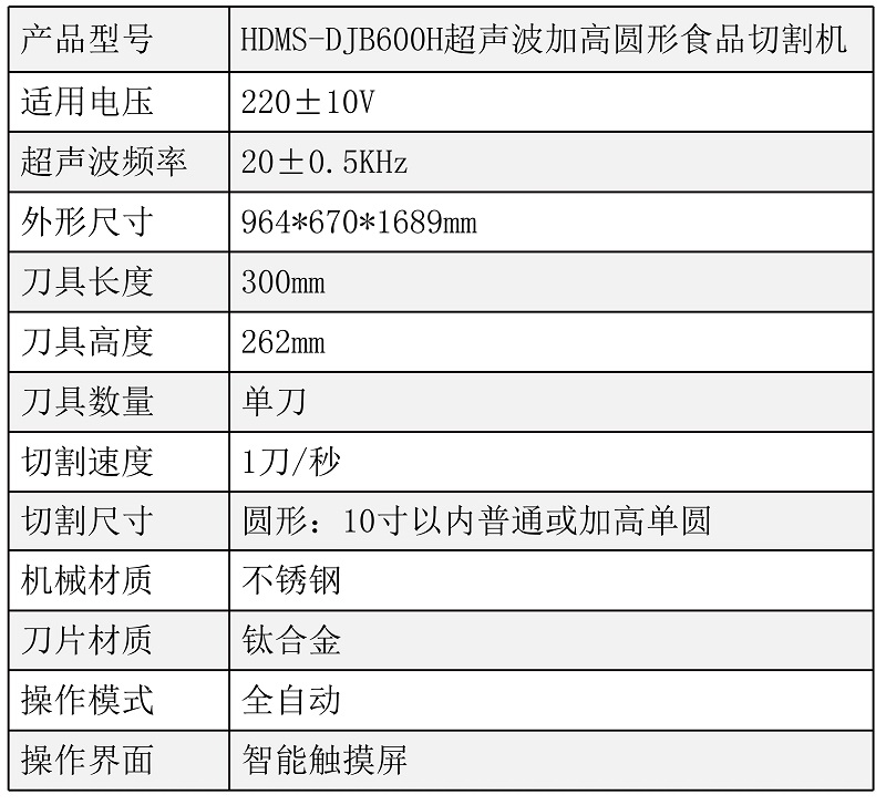 該設備配備單把超聲波刀片,可切圓形(只限一個圓蛋糕),也可切方形 |