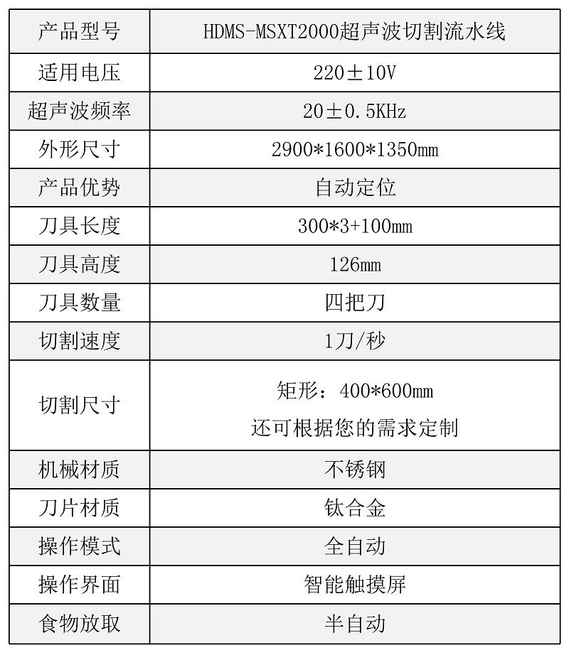 該設(shè)備配備雙把超聲波刀片,既可切方蛋糕,也可同時(shí)切兩個(gè)圓蛋糕,還具有自動(dòng)上水洗刀、安全光柵的人性化功能,效率高,更方便 |