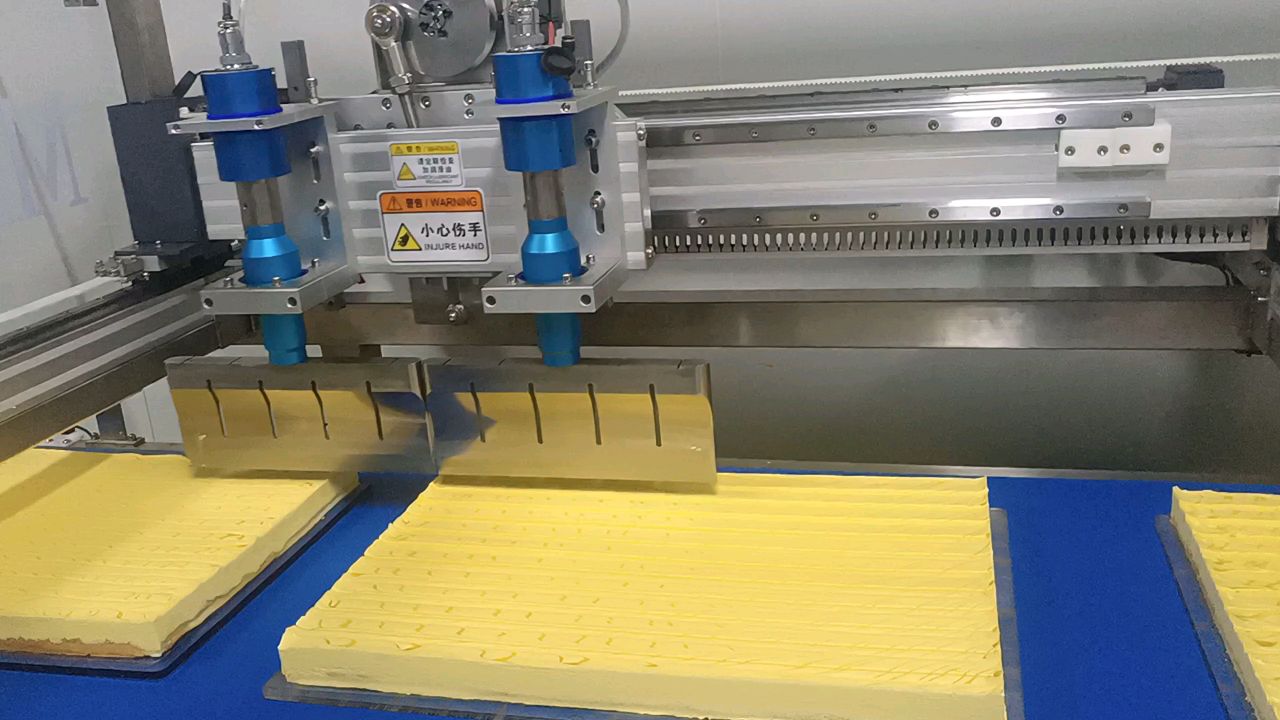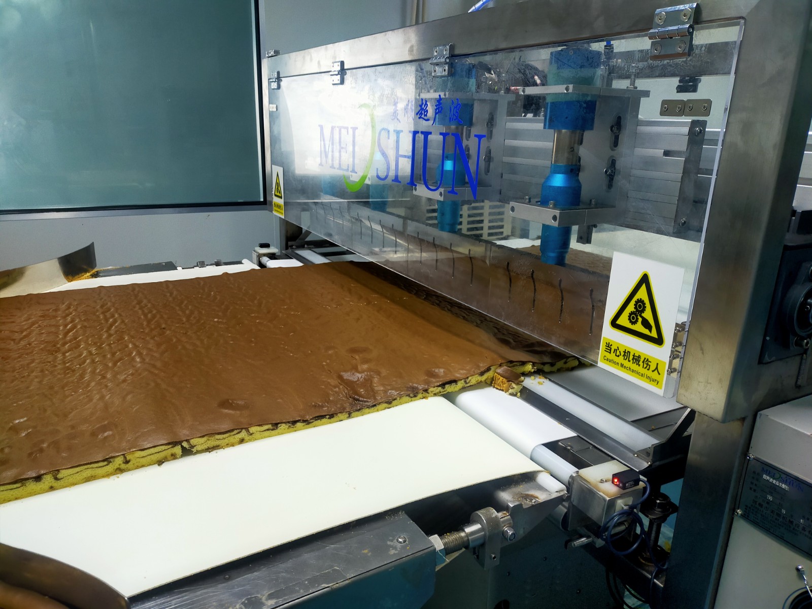 Ultrasonic cutting machine uses high-frequency vibration to carry out cutting work. The equipment realizes friction-free and pressure-free cutting mode. Meishun Machinery can provide a complete set of cutting solutions for bakeries of any size, and can customize each machine according to customer needs.
